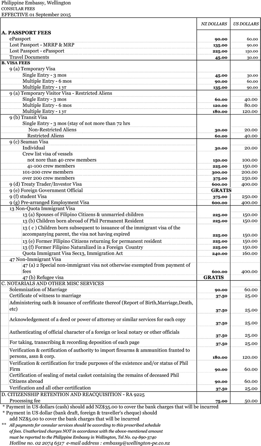 Schedule of Fees 01 September 2015